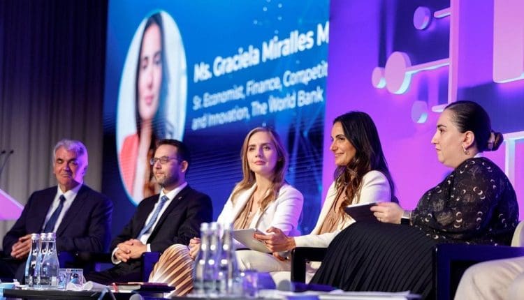 Гувернерката зборуваше на панел-дискусијата на тема „Зошто е важна мобилизацијата на приватниот капитал“, којашто ја отвори главниот економист на Светската банка за Европа и Централна Азија, Ивајло Изворски, со свое излагање. Таа се осврна на доходовниот јаз помеѓу нашата и земјите од регионот со економиите во ЕУ, којшто сѐ уште е длабок, како и на ефектите од мобилизацијата на приватниот капитал за остварување на потребните структурни реформи во економиите, особено зелената трансформација. „Јазот за финансирање на зелените инвестиции е особено голем кај земјите во развој, во нашиот случај се проценува дека е околу 7,7% од БДП. Имајќи предвид дека јавните ресурси се ограничени, особено по скорешните кризи, при зголемена цена на капиталот, потребна е мешавина од повеќе политики за негово надминување. “, посочува Ангеловска-Бежоска.