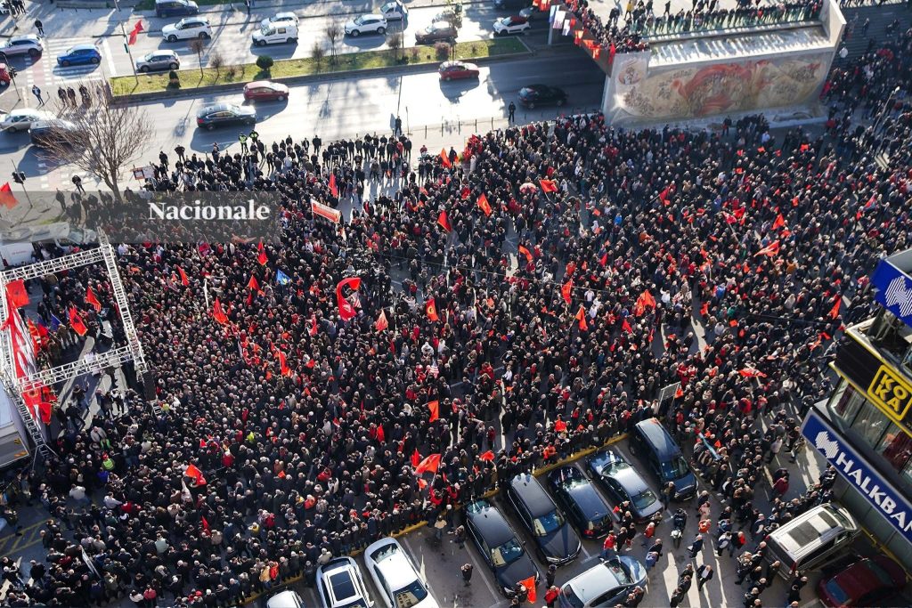 „Денес сме собрани на плоштадот Скендербег, историско место за границите на Европа, за да не се дозволи негово окупирање. Тука сме во близина на местата каде што дејствувале истакнати личности од нашиот народ, како што се Хасан Приштина, Пјетер Богдани и Неџат Аголи. Хасан Приштина беше убиен за слободата на нацијата, Пјетер Богдани обезбеди европско знаење и филозофија, додека Неџат Аголи беше застрелан од режимот поради неговото барање за слобода, правда и еднаквост за народот“, рече Ахмети.