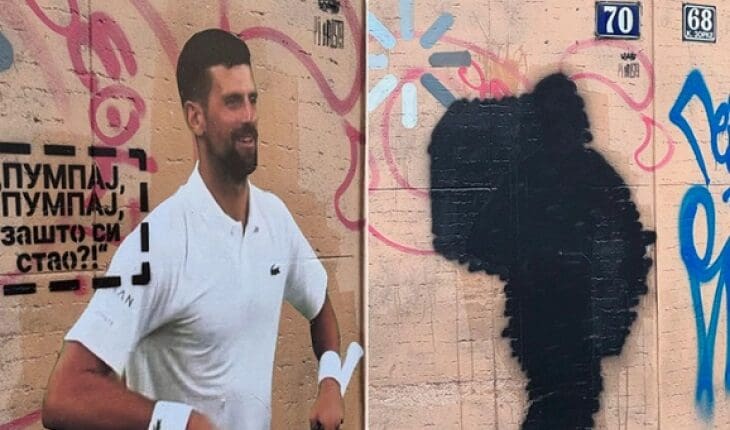 Мурал посветен на Новак Ѓоковиќ, што се наоѓа во центарот на Белград, е прекриен ноќеска со црна боја. Делото на уметникот и активист Андреј Јосифовски, познат како Пијанистот, беше инспирирани од познатото „пумпање“ на Новак за време на овогодинешниот Вимблдон.