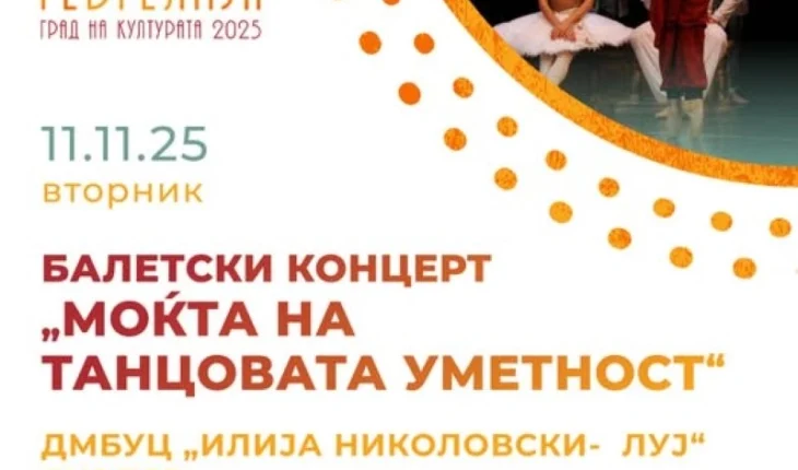 Во рамки на ноемвриската програма на манифестацијата „Гевгелија град на културата за 2025 година“, љубителите на танцовата уметност вечер ќе имаат можност да уживаат во Балетскиот концерт „Моќта на танцовата уметност“, кој ќе се одржи во Народниот театар- Гевгелија, информираа од Општината.