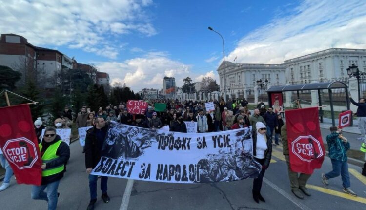 „Институциите го штитат Усје, наместо граѓаните. Го признаваат проблемот, но не нудат никакво решение, наместо да не штитат нас. Сето тоа го прават за профит, бидејќи за нив, профитот е најголем приоритет. Скопје е наше, без нас нема да постои Скопје. Доста ни го земаат за да остварат профит. Историјата покажува дека ниту еден народ што бил сплотен, не бил победен. Затоа, станете народе, ни ги трујат децата“, порача активист на протестот пред Владата.