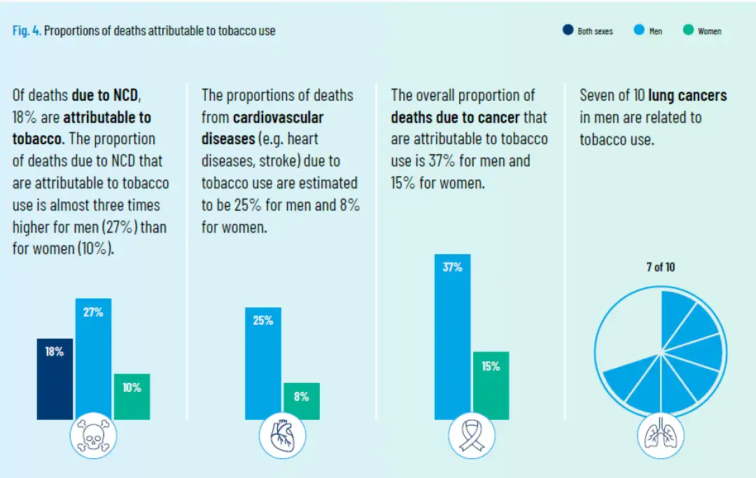 Податоците укажуваат дека 18 отсто од смртните случаи од незаразни болести во Европа во 2019 година биле поврзани со употребата на тутун, што значи дека речиси секој петти предвремен смртен случај би можел да се избегне доколку тутунот се елиминира.