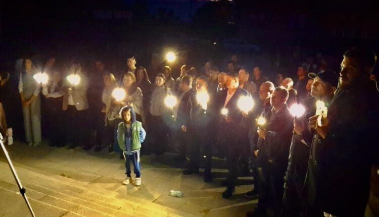 Но продолживме. Ги вклучивме мобилните за да ја осветлиме бината, а гласот на кандидатката за градоначалник Мариче Кармазичева стана уште посилен и поенергичен.