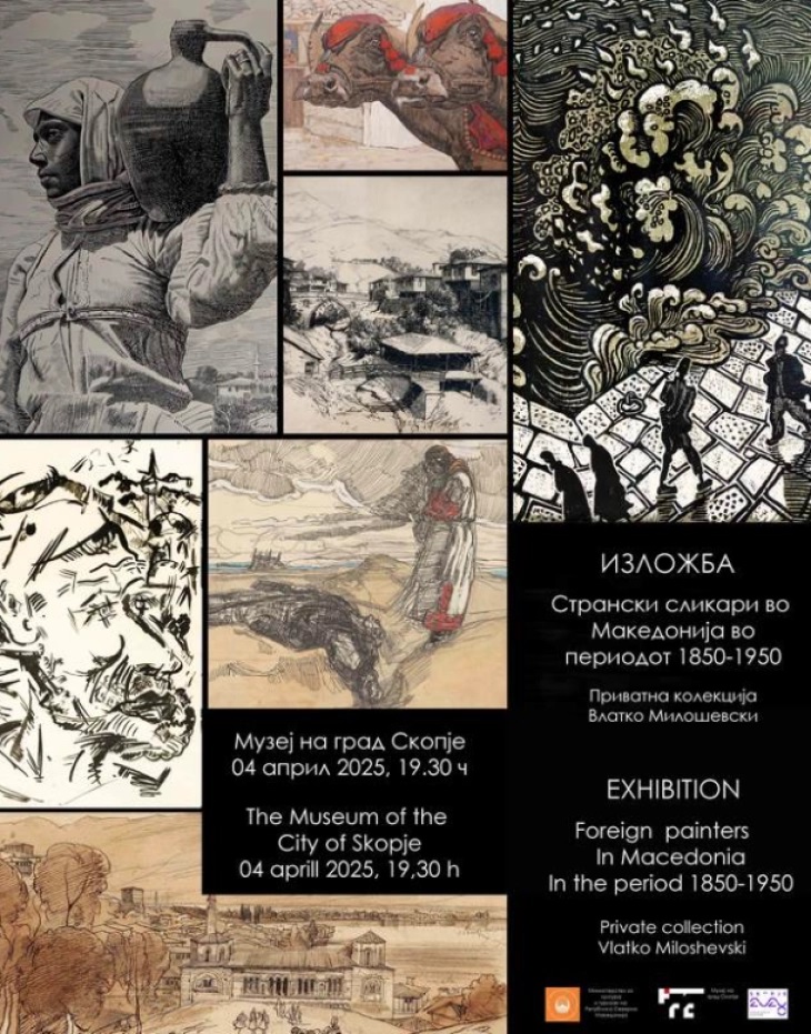 Во Музејот на град Скопје вечер ќе биде отворена изложба на дела од странски сликари кои ја посетиле Македонија и твореле на теми поврзани со нашата држава, во периодот од 1850 до 1950 година.