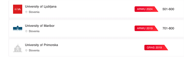 Во Словенија се појавуваат три универзитети: Љубљана, Марибор и Приморска…