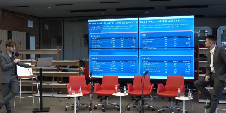 – Навидум, оваа бројка звучи дека е песимистичка односно многу долга, но постојат многу фактори кои можат да го забрзаат тој процес и тоа е пораката на која треба да се фокусираме како општество. Во рамки на истражувањето направени се неколку сценарија кои кажуваат дали овој период ќе се намали доколку имаме полноправно членство во Европската унија, имаме пристап до пазарот, имаме пристап до фондови или имаме продолжена институционална поддршка. Сите сценарија, особено во клучните области – економија, социјални политики и дигитализација, ни даваат јасна слика дека состојбите ќе се поместат многу, дури дел од нив ќе се преполоват, доколку имаме полноправно членство или пристап до европските фондови, вели Виктор Митевски, извршен директор на Здружението за истражување и анализи (ЗМАИ).