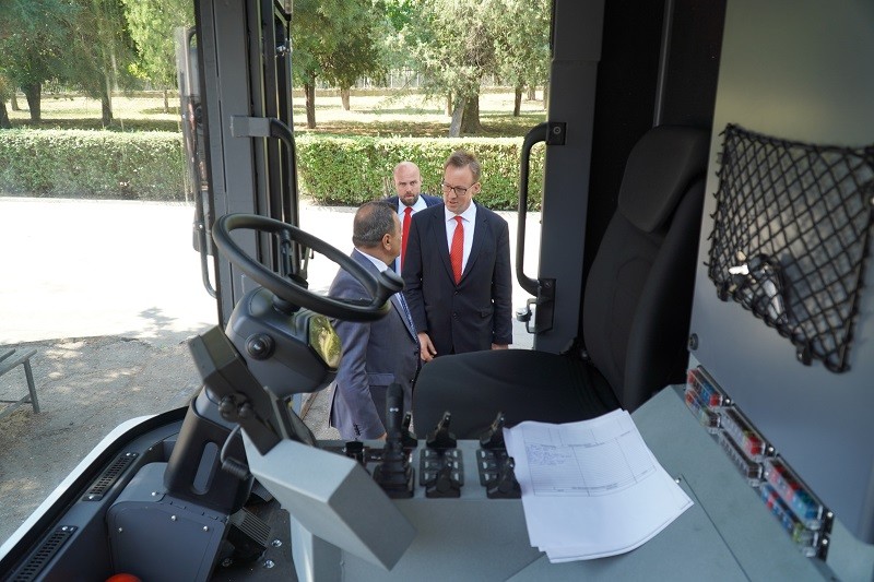 Комесарот Бартон се запозна со производствената технологија и погоните каде што се произведуваат овие современи еколошки возила за одржување хигиена во урбани средини чија линија само во последниве две години се збогати со три нови електрични возила и едно со погон на водород кое се уште е единствено во светот.