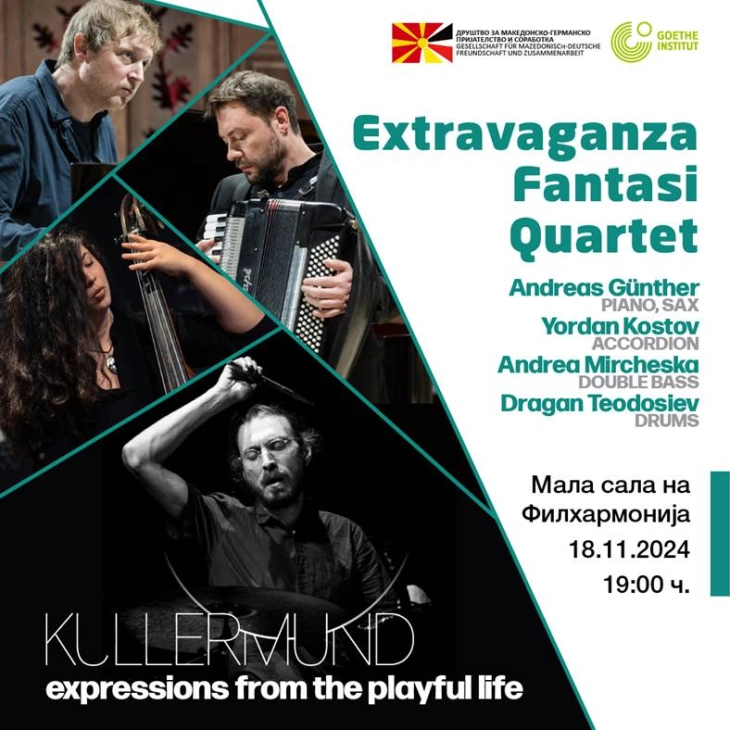 Екстраваганца фантази квартет, вечер, во 19 часот, ќе одржи концерт во Камерната сала на Филхармонијата во Скопје, во организација на Друштвото за македонско - германско пријателство и соработка и Гете институтот.