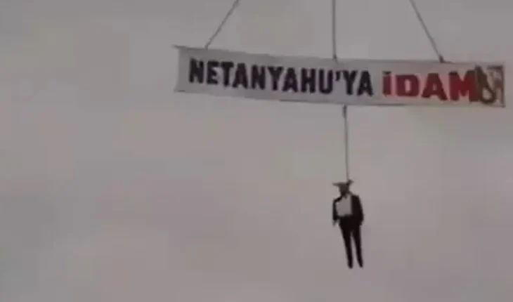 Фотографиите објавени од турскиот провладини весник „Јени Сафак“ покажуваат кукла како виси од кран во градот Трабзон на Црното Море. Над неа, на постер пишува „Смртна казна за Нетанјаху“.