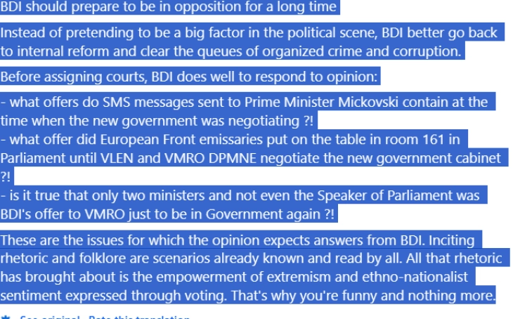 “Наместо да се претставува како некој голем фактор на политичката сцена, ДУИ би било подобро да се врати на внатрешните реформи и да ги исчисти своите редови од организираниот криминал и корупцијата.