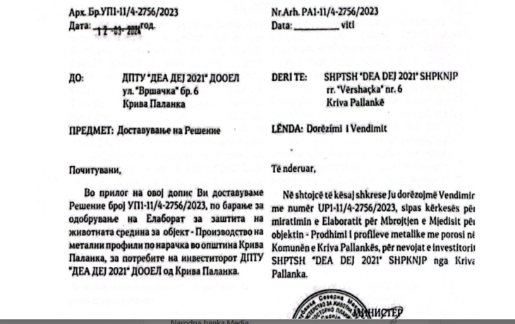 Министерството, се подвлекува, останува посветено на транспарентноста и ги повикува сите медиуми на увид во документацијата За целосна транспарентност и точна информираност на јавноста, Министерството за животна средина и просторно планирање ги повикува сите заинтересирани медиуми да дојдат на лице место во просториите на Министерството, каде што ќе им биде презентирана целата архивска граѓа поврзана со оваа постапка.