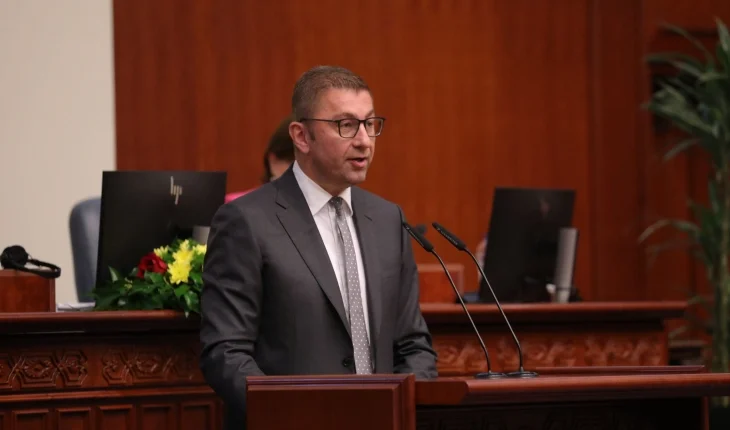 Премиерот Христијан Мицкоски денеска во Собранието го подигна за уште еден степен погоре во неговото противење да се направат уставните измени и внесувањето на Бугарите во конституцијата за да продолжат преговорите со ЕУ, истовремено повторувајќи ја стандардната теза: „Додека сум јас премиер…“