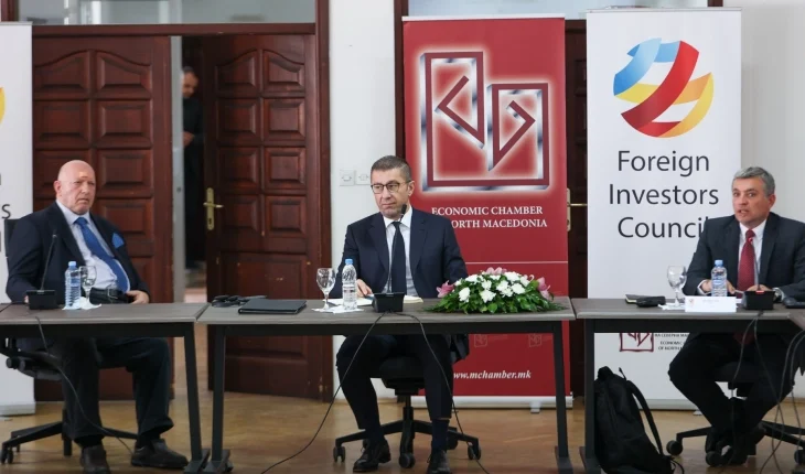 – Имавме плодна и успешна дебата. За нас странските инвеститори се исклучително важни, се разбира исто како и домашните инвеститори, бидејќи економијата е една од главните приоритети на функционирањето на оваа Влада и сите оние атрибути кои се составен дел во таа борба за што подобра економија. Чувствуваме дека полека, но сигурно се движиме кон консолидирање и тоа во услови на исклучително големи глобални предизвици. Ценам дека македонската економија се движи кон состојба на консолидирање, се разбира предизвиците нема да сопрат, тие ќе продолжат, но ние се обидуваме да ги антиципираме и преку антиципирање да наоѓаме решенија за тие предизвици. Колку е државата посилна, толку и бизнисот повеќе вреди, толку и имотот повеќе вреди, колку е бизнисот посилен толку станува државата посилна затоа е многу важно да имаме ликвиден бизнис, економија, таа економија да си ги врши навремено обврските кон државата и кон буџетот, а се разбира со тие обврски и со солиден и ликвиден буџет ние ќе можеме да имаме повеќе капитални инвестиции, да имаме повеќе во здравството, да имаме повеќе во образованието, да имаме повеќе во земјоделието, повисоки пензии, повисоки плати,…, изјави Мицкоски по состанокот.