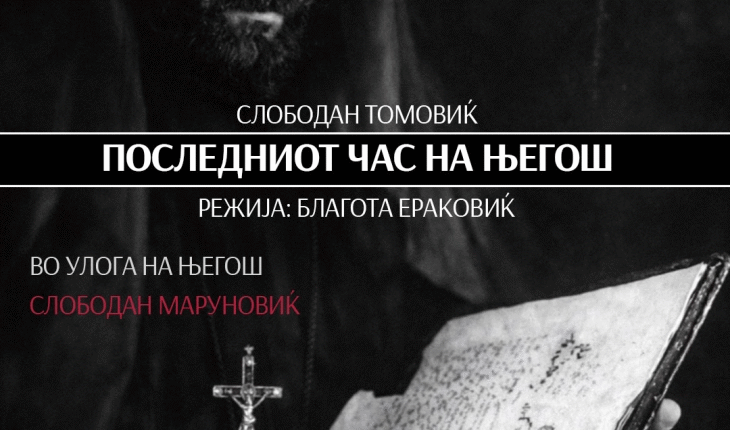 Монодрамата „Последниот час на Његош“, со актерот Слободан Маруновиќ, првенец на Црногорското народно позориште, вечер во 20 часот гостува на сцената во Македонскиот народен театар.