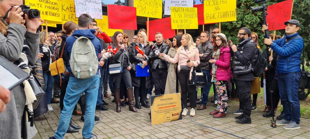 Здружението на новинари на Македонија и Самостојниот синдикат на новинари и медиумски работници денеска протестираат пред Граѓанскиот суд во Скопје.