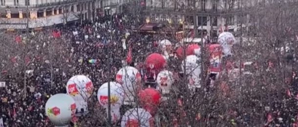 Во четвртокот, повеќе од 1,1 милион луѓе ширум државата учествуваа во големи штрајкови и масовни протести против плановите на владата за пензиските реформи. Беше објавено дека само во Париз на улиците излегле 80.000 луѓе.