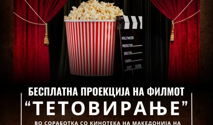 Општина Кисела Вода организира бесплатна проекција на филмот „Тетовирање“ во Драчево