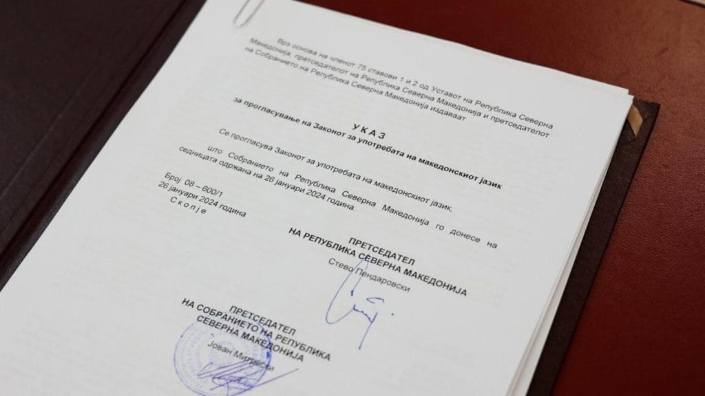 Претседателот Стево Пендаровски денеска го потпиша указот за прогласување на Законот за употребата на македонскиот јазик, што во петокот го донесе Собранието на Република Северна Македонија.