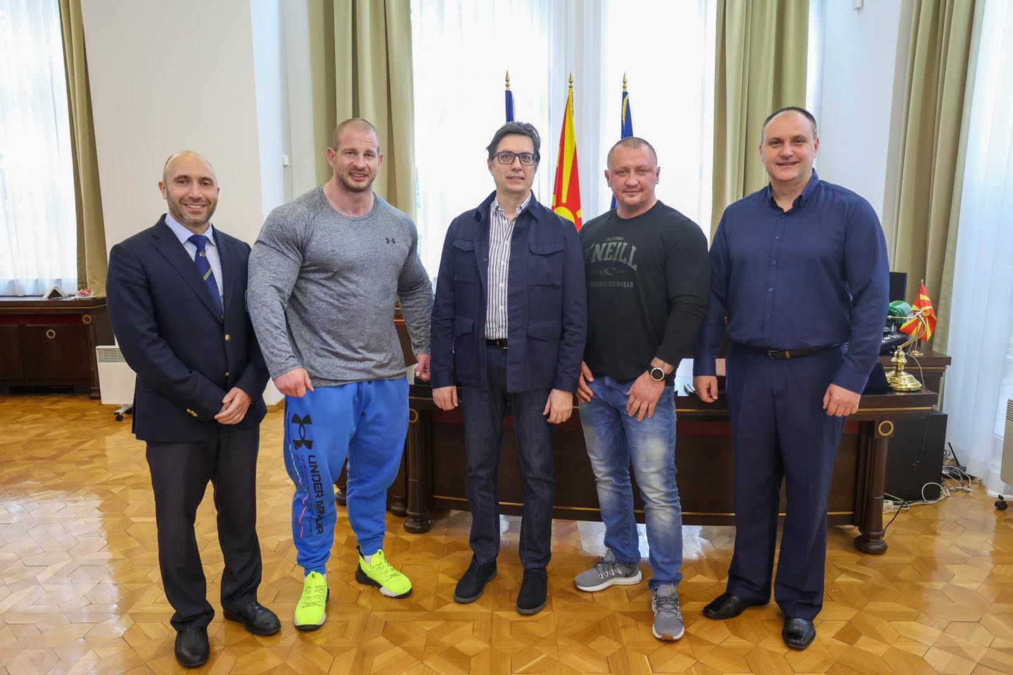 Македонскиот претседател – Стево Пендаровски денеска во својот кабинет го прими светскиот шампион во бодибилдинг Михал Крижанек.