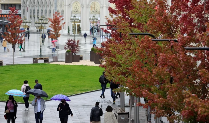 Во Скопје претежно облачно со повремени врнежи од дожд, повремено пообилни. Ќе дува слаб до умерен ветер од југоисточен правец. Минималната температура ќе се спушти до 12, а максималната ќе достигне до 14 степени.