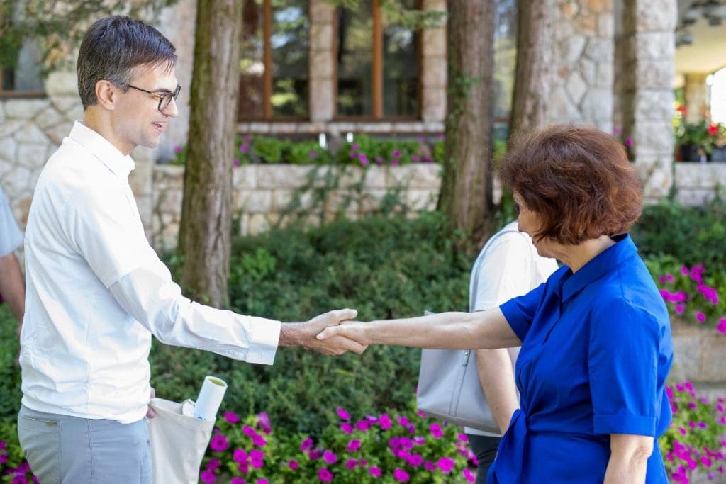 На средбата, на која присуствуваа и нивните ментори од Сојузот на хемичари и технолози на Македонија и професори на Институтот за хемија при Природно-математичкиот факултет од Скопје, Марина Стефова и Миха Буклески, претседателката Сиљановска Давкова упати честитки за одличните резултати, истакнувајќи дека нивното постигнување треба да биде поттик и инспирација за сите млади луѓе што се занимаваат со научно-истражувачка работа. Претседателката Сиљановска Давкова оддаде признание и за нивните постигнувања на претходни меѓународни и домашни натпреварувања.