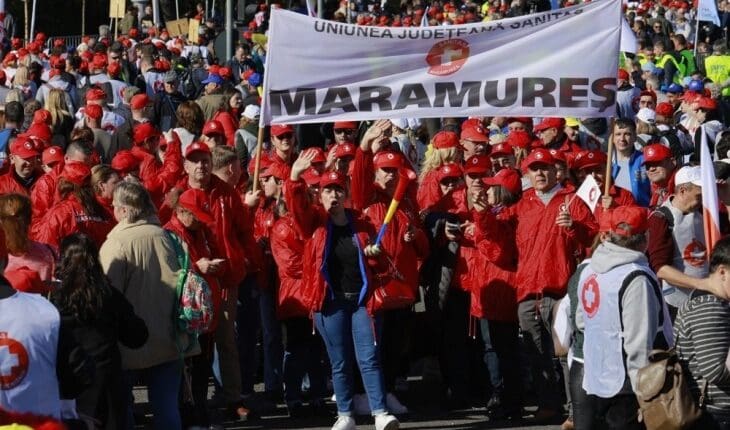 Четири романски синдикални конфедерации денеска организираа протест во Букурешт поради владините економски мерки, а демонстрантите побараа и оставка на Владата на Илие Боложан.
