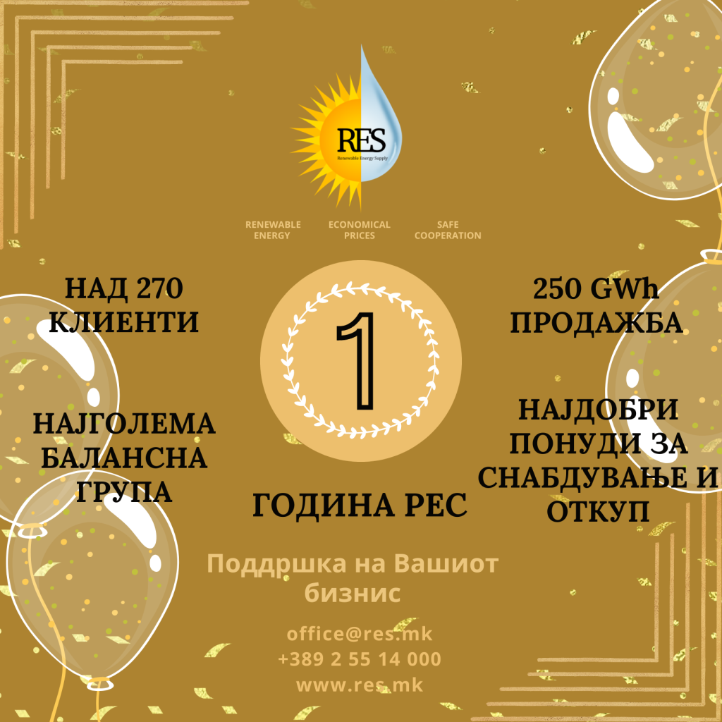 Фирмата за трговија со електрична енергија РЕС одбележа една година постоење и за тој период се позиционира како лидер во снабдувањето со електрична енергија на слободниот пазар.