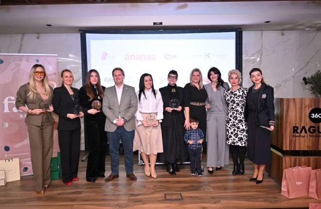 Десет извонредни дами, кои со својот професионален и општествен придонес континуирано поставуваат високи стандарди за деловно и етичко однесување, и кои остварија значајни успеси во изминатата година, синоќа беа прогласени за победнички во македонскиот избор за „Жена на годината 2025”. Почесната титула ја понесе авангардната кореографка за современ танц, Рисима Рисимкин.