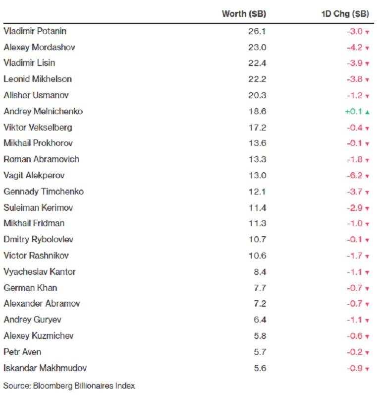 За едно деноноќие најбогатите Руси со загуба од 39 милијарди долари – пишува „Блумберг“.