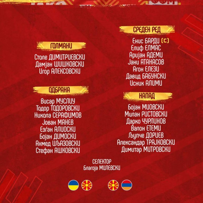 Селекторот на македонската фудбалска репрезентација Благоја Милевски денеска го објави списокот со 25 фудбалери повикани за квалификацискиот натпревар со Украина за пласман на Европското првенство, како и за пријателскиот дуел со Ерменија. Од тимот ќе отсуствуваат неколку имиња кои во минатото беа стандардни во националниот тим.