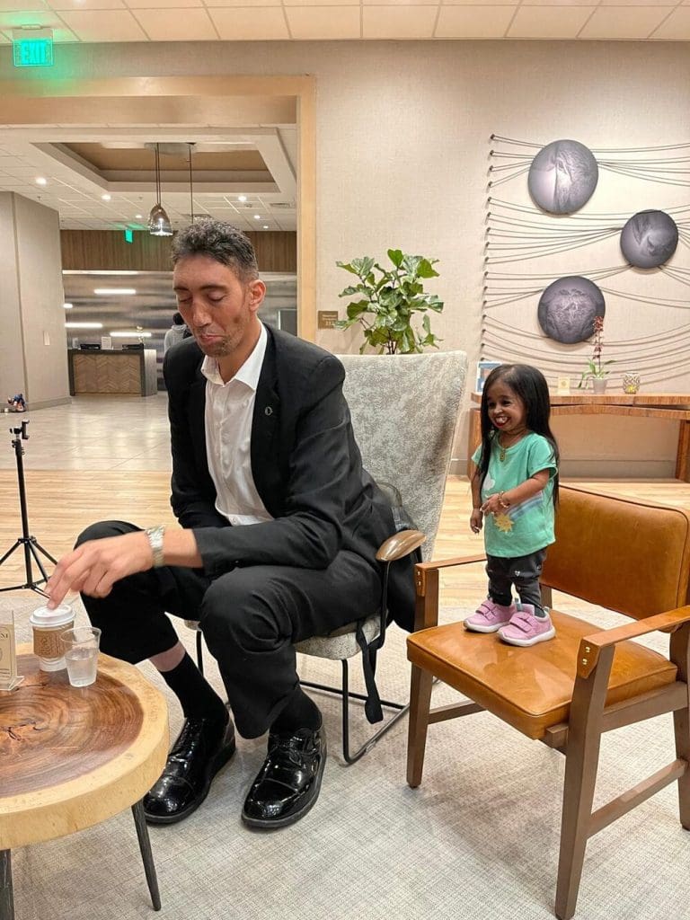 Најниската жена на светот Џоти Агме и највисокиот маж на планетата Султан Косен се сретнаа во Калифорнија.