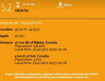Според првите информации од ЕМСЦ, земјотресот бил со јачина од 5,2 степени.
