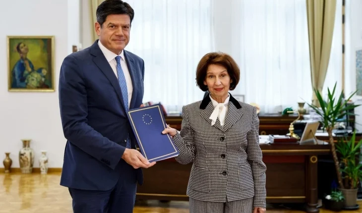 Претседателката Гордана Сиљановска-Давкова го прими шефот на Делегацијата на Европската Унија, амбасадорот Михалис Рокас, кој ѝ го предаде Извештајот на Европската комисија за напредокот за 2025 година. Амбасадорот Рокас ги нотираше главните проблеми со коишто се соочуваме, како и очекуваните промени, информираат од Кабинетот на Сиљановска Давкова.