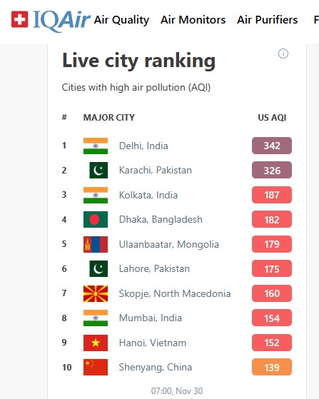 Пред и по седмото место на таа неславна листа се наоѓаат големи индустриски центри од Азија, па така тоа е уште еден податок што никако не ја оправдува состојбата со воздухот во Скопје. Освен честите магливи ноќи и утра во скопската котлина, други оправдувања за вака високата загаденост едноставно нема.