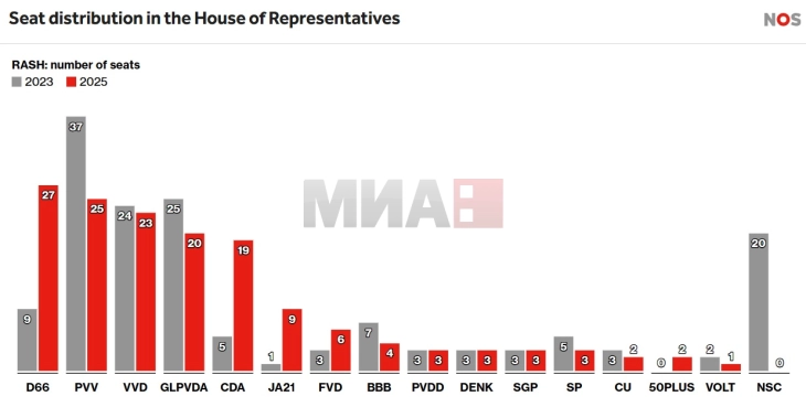 – Ако се собере се, добивате 78 места за коалицијата од десниот центар. Дефинитивно има шанса за тоа, изјави Ердманс, алудирајќи на коалиција што би ја сочинувале Д66, ВВД, ЦДА и ЈА21.