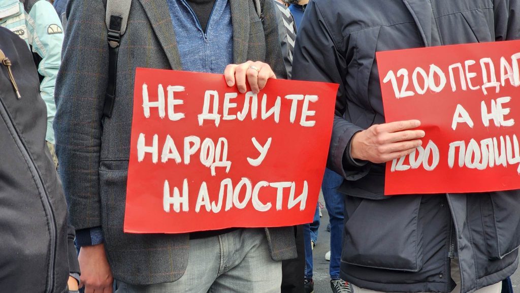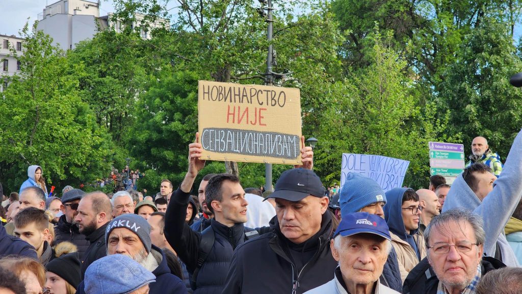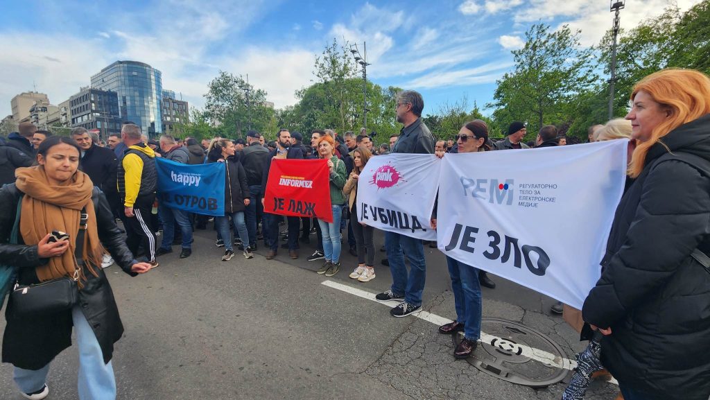 На плоштадот Никола Пашиќ пред зградата на РЕМ, со транспарент на кој пишуваше „Србија против насилство“.