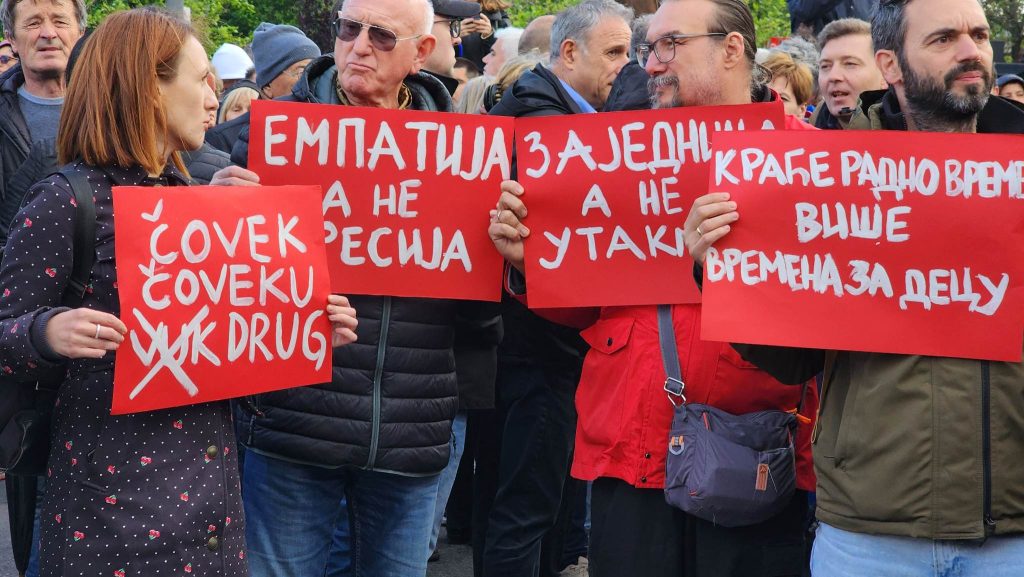 Граѓаните прошетаа до Градското собрание, каде ги имаа истите барања.Претходно денеска пред зградата на РЕМ во Белград се собраа претставници на опозициските партии за да го достават подготвениот текст за оставките на членовите на Советот на таа институција.