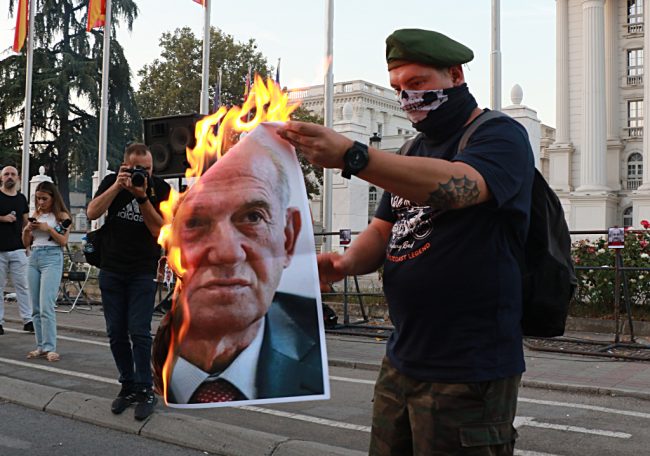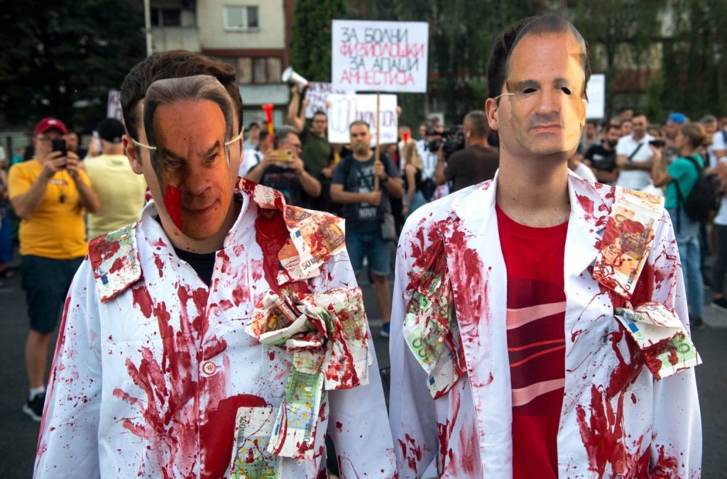 На протестот, кој како и минатата недела не привлече голем број луѓе, двајца демонстранти носеа маски од бившиот министер за здравство Венко Филипче и од директорот на Клиниката за онкологија Нино Васев, а на нивните бели мантили измачкани со црвена боја беа лепени лажни пари. Покрај тоа, беше запалена фотографија од јавниот обвинител Љубомир Јовески, како и од други функционери кои ги сметаат за главни виновници за скандалот.