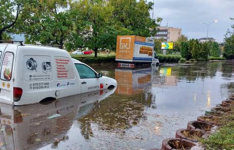 Поплавени се сообраќајници, комплетно блокирани булевари, подвозниците се целите под вода, а водата освен во дворовите и подрумите навлезе и во ГТЦ, односно трговскиот центар „Ист гејт“.