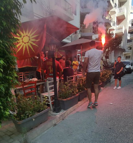 Тие веќе низ градот ги развиорија македонските знамиња и запалија факели подготвувајќи се за петтиот натпревар од квалификациите за ЕВРО 2024, закажан за 20.45 часот.