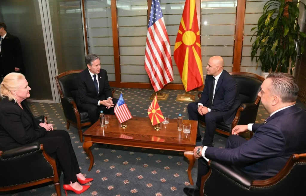 Претседателот на Владата на Република Северна Македонија, Димитар Ковачевски попладнево во Скопје се сретна со американскиот државен секретар Антони Блинкен.
