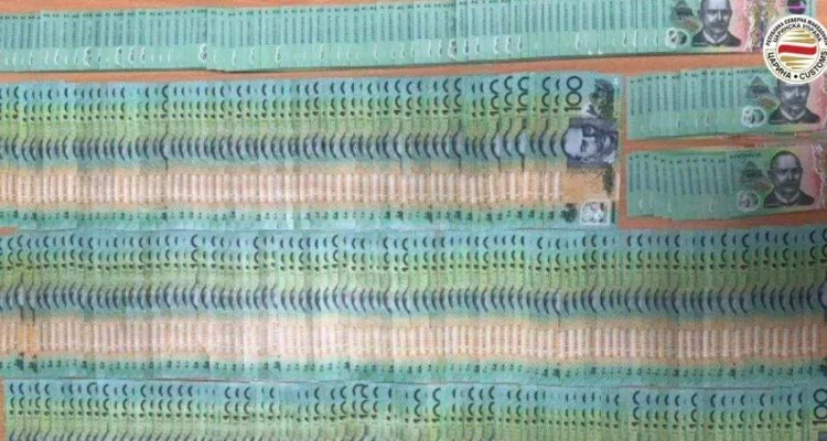 Царински службеници на Меѓународен Аеродром Скопје при контрола на двајца македонски државјани – сопружници, пронајдоа 68 илјади австралиски долари.