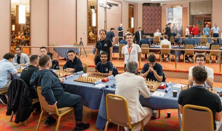 Во шестото коло кое заврши синоќа во дуелот на непоразените Алкалоид загуби со 2,5:3,5 од романскиот тим Супер Чес. Единствената победа за Супер Чес ја постигна светскиот првак Гукеш (со бели фигури) на првата табла совладувајќи го Арјун Еригаиси, другите пет дуели завршија реми. За Алкалоид настапија: Веи Ју (втора табла – бели); Јангји Ју (трета – црни); Читамбарам Аравинд (четврта – бели); Александар Инџиќ (петта – црни) и Абхиманју Пураник (шеста – бели).