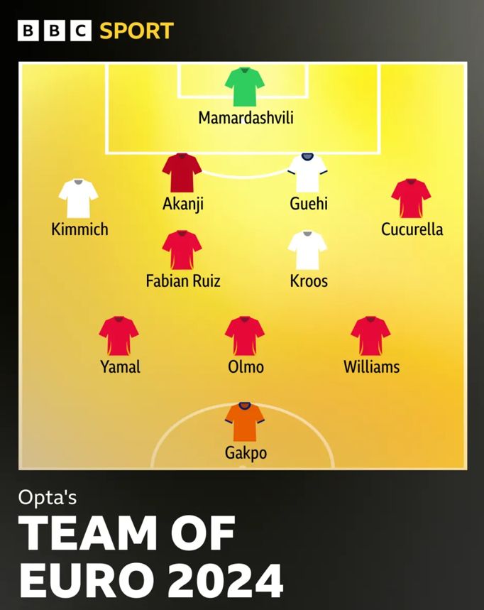 Овие изданија, партии на Шпанците им донесоа и најмнногу претставници во тимот на турнирот и тоа во изборот на Опта-компанијата за спортска аналитика.