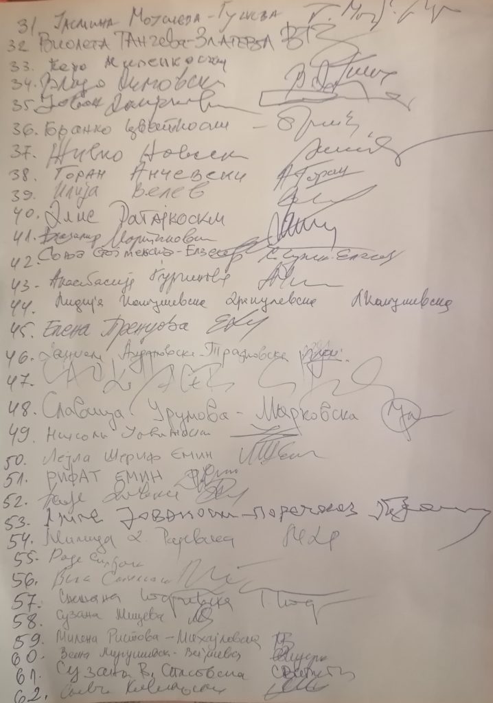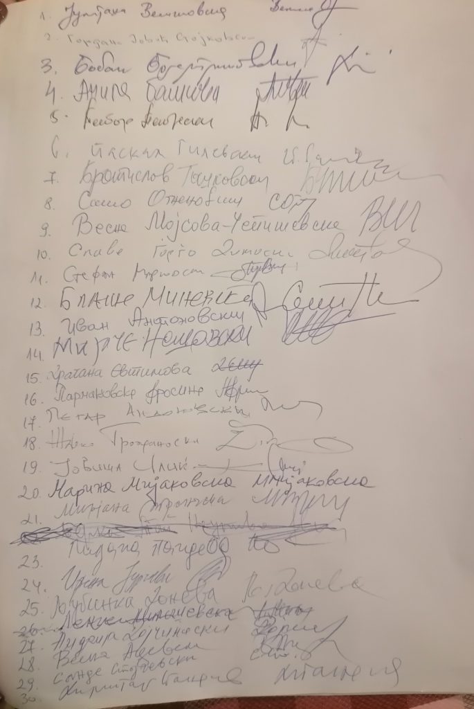 Во прилог го доставуваме и своерачно потпишаниот список на членовите на ДПМ присутни во текот на дискусијата на 25 ноември 2023 година, по минирањето на Вонредното изборно собрание од страна на Кристина Николовска. Потпишаните членови гласаа по заклучоците за коишто ја известуваме јавноста.